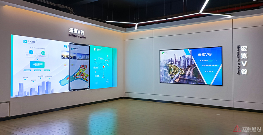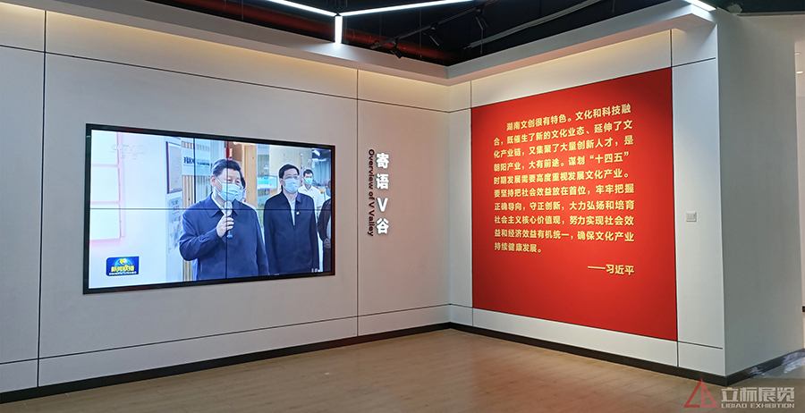 該項目的主要設計元素為數字科技的 “云”,瀏陽河畔的 “水”。馬欄山作為中國視頻文化產業的風向標,是文化和科技的集中交融之處,智慧之云激蕩著她的精魂體魄,未來之子孕育在她的腹中。而她自身又處在瀏陽河的第八道灣懷中,湖湘之水蜿蜒而過,勾勒出她 “V” 字形的身姿曲線。我們通過在有效的布展空間內,充分利用聲、光、電等現代新媒體技術,創造兼具湖湘地域文化和科技創新文化兩大特色的展示模式,為觀眾帶來新奇的審美藝術享受。