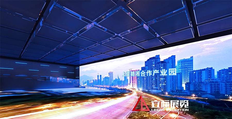 本館在展板、模型、實物陳列等常見形式之外,綜合運用聲、光、電、圖像、三維動畫展示技術(shù)等,重點打造“巨幅LED主題影院”、“球幕多屏聯(lián)動平臺”、“L幕數(shù)字沙盤”、“LED條形光電創(chuàng)意柱”等多媒體展項,使各篇章的主題演繹異彩紛呈,觀展的情緒和體驗富于變化,生動、形象地展示園區(qū)的飛速發(fā)展和規(guī)劃建設(shè)成果。